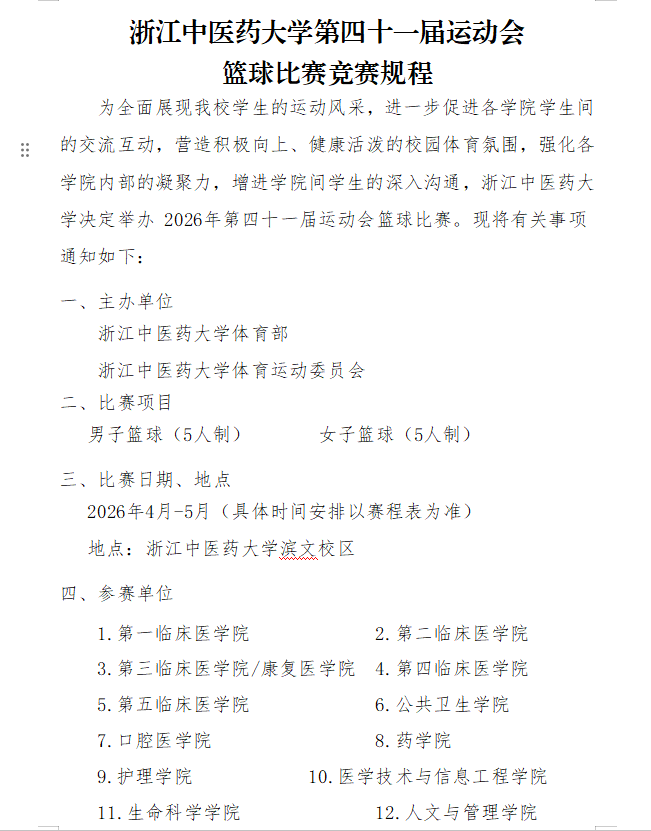 关于举行浙江中医药大学第四十一届运动会--篮球比赛竞赛规程通知